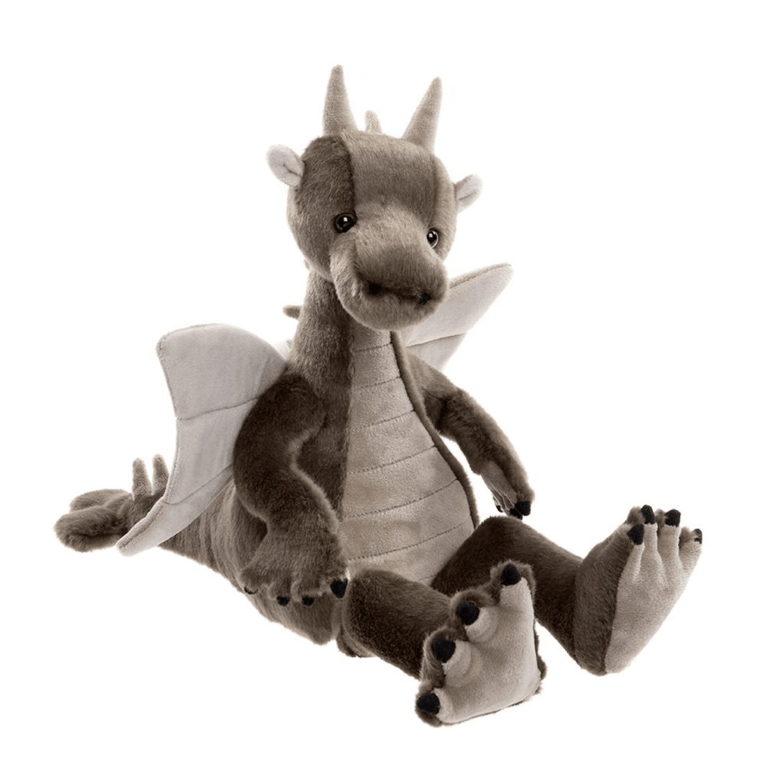Meet Clubs, a delightful non-jointed and machine washable dragon from the 2025 Bearhouse collection by Charlie Bears. This lovable companion is crafted from soft brown and grey plush and has a plump, huggable body that's perfect for cuddles. The dragon's distinctive design includes adorable horns, detailed spinal ridges along its back and beautiful wings that add to its magical appeal. Be sure to look out for Clubs friends – Hearts, Diamonds, Spades and Deck!