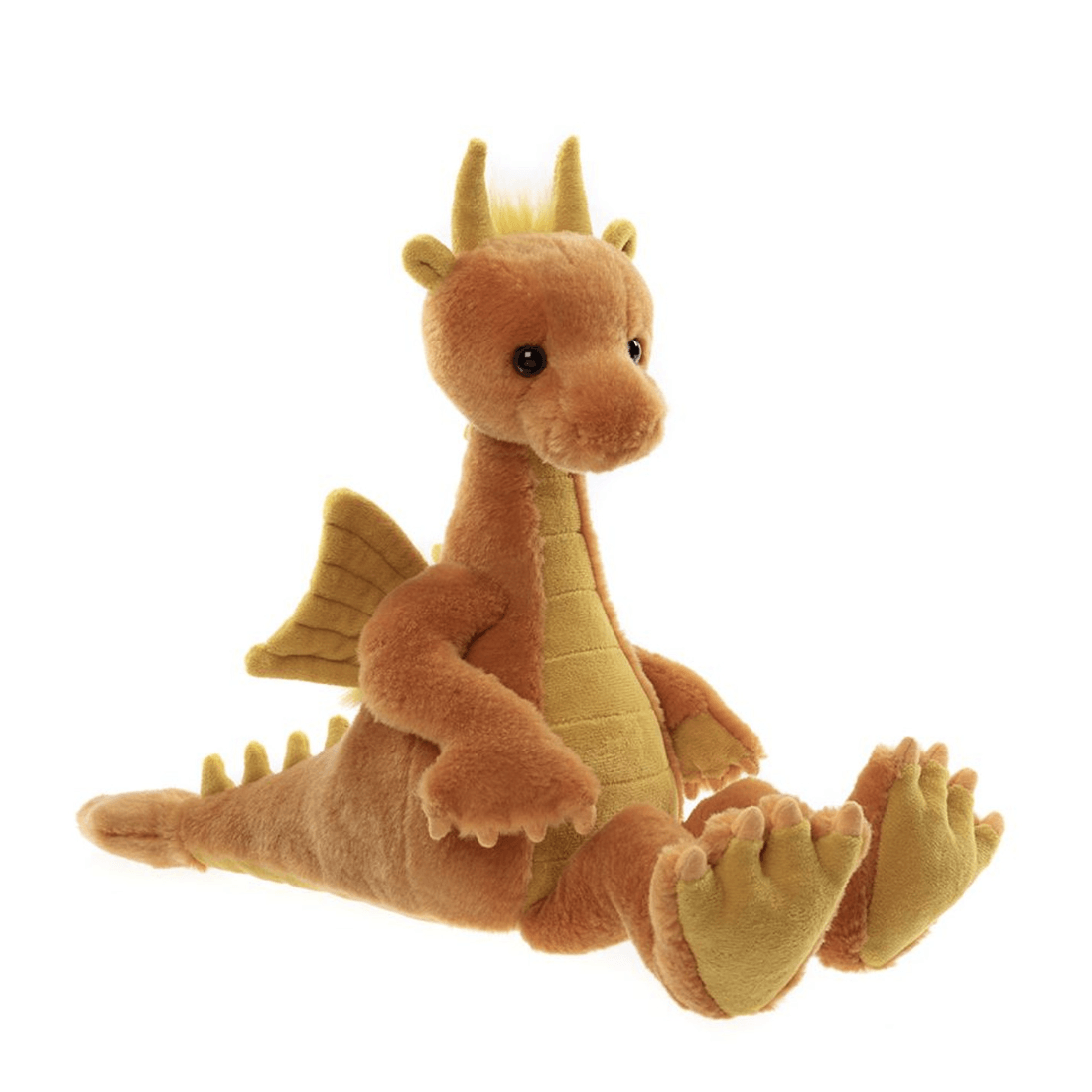 Diamonds is a cuddly companion from the 2025 Bearhouse collection by Charlie Bears. Part of a whimsical dragon family inspired by playing cards, this non-jointed and machine washable dragon is made from soft plush in orange and yellow hues. With delicate fur accents and adorable wings, Diamonds is impossible to resist. Diamonds has playful horns, distinctive spine detailing and a plump, cuddly body that bring this magical creature to life.