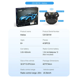 CaDA 1:14 Helios Sports Car Dual Control RC Brick Model Kits