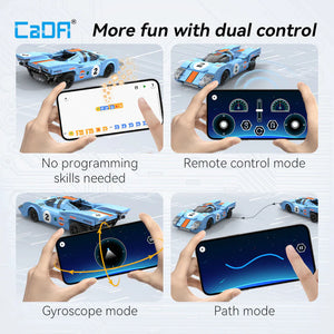 The CaDA Azure Storm C51076W merges the nostalgia of classic racing cars with modern interactivity, delivering a dynamic play experience through a smart app and traditional radio control. It offers five versatile control methods to suit different preferences: