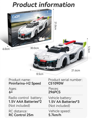 CaDA 1:20 Pininfarina H2 Speed Car Dual Control RC Brick Model Kits