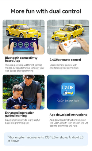 CaDA 1:20 RUF Yellowbird Car Dual Control RC Brick Model Kits