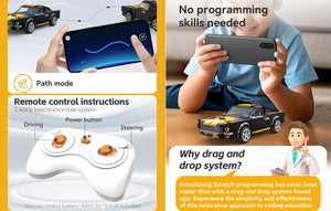 This 1:20 scale model combines detailed brick construction with a sturdy motorized chassis, turning the classic American muscle car into an interactive playtime experience. Beyond basic control, the mobile app features drag-and-drop programming—letting you design custom movements for the car. This makes it a fun, educational way to explore basic coding.