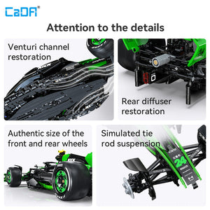 Over 2,500 pieces, including working suspension, DRS rear wing, Venturi tunnel underbody, hybrid piston play, and a removable front splitter. -