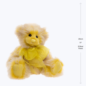 Friday is a member of the 2025 'Our Journey So Far Collection' which features 7 exquisite bear-utiful teddy bears, each representing a day of the week. By collecting all 7, they can take turns to accompany you on your daily adventures. Friday has luxurious yellow plush tipped with cream that’s super-soft to the touch. With expressive eyes, a carefully hand-embroidered nose, and charming tickly toe detailing, Friday is truly a gem, complete with a large, vibrant yellow organza bow.