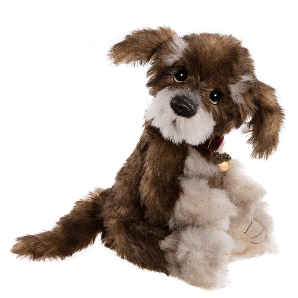 Crafted from luxuriously soft and dense dark brown and cream alpaca and mohair fur, Charlie Bear Fuddlebrook from Isabelle Collection is paw-fect for snuggling. He has sculpted paw pads with tickly toes, shiny black eyes which are accented with a touch of white, a little black hand embroidered nose and wears a charming golden bell pendant. Look out for puppy dog friend Muggleswick - they sit paw-fectly together. Don’t underestimate his size; his personality is larger than life!