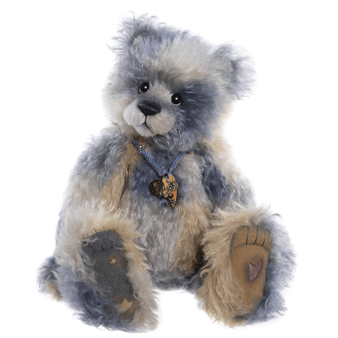 Charlie Bears Tintagel is a paw-some blue-grey and beige bear made from alpaca and mohair with worn out patches on his paw pads from our 2024 Isabelle Collection. He is named after a village in Cornwall that has its own Labyrinth made of stone! Tintagel is complete with a decorated heart-shaped necklace.