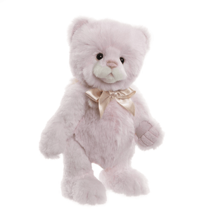 Charlie Bears Miss Chevious is a cheeky and adorable standing plush panda in stunning bubblegum pink, except for her crisp white shaved muzzle. She wears a pretty rose gold satin bow around her neck and is sure to turn heads in your bear collection. If you like Miss Chevious, look out for her sisters Miss Behaving and Miss Hap!