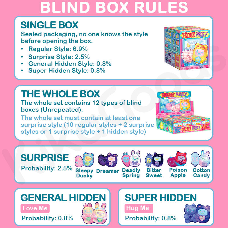 6. Blind boxes are sold as mystery items; we do not accept returns or exchanges for unwanted styles, duplicates, or change of mind.