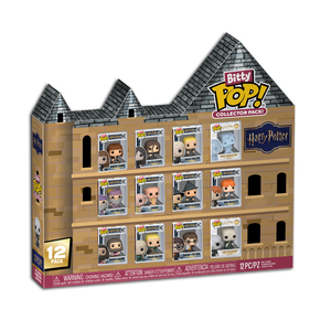 The world of POP! is getting bigger—and smaller—with Bitty POP! collectibles! Expand your Harry Potter™ collection with this Collector Pack featuring Hogwarts™-themed packaging! This exclusive 12-pack includes Bitty POP! Hermione Granger™, Bitty POP! Bellatrix Lestrange™, Bitty POP! Draco Malfoy™, Bitty POP! Nearly Headless Nick™, Bitty POP! Albus Dumbledore™, Bitty POP! Dobby™, Bitty POP! Minerva McGonagall™, Bitty POP! Ron Weasley™, Bitty POP! Rubeus Hagrid™, Bitty POP! Draco Malfoy™ – Quidditch™, Bitty POP! Harry Potter™, and Bitty POP! Voldemort™.