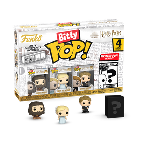 Diminuendo! Your favorite Harry Potter™ Pops! have been shrunk into Bitty Pops! Expand your Wizarding World™ collection with this assortment of Bitty Pop! figures featuring your most beloved Harry Potter characters! This 4-pack includes Bitty Pop! Rubeus Hagrid™ (Yule Ball), Bitty Pop! Fleur Delacour™ (Yule Ball), Bitty Pop! Cedric Diggory™ (Yule Ball), and a mystery Bitty Pop! figure. The possible mystery Bitty Pops! are Hyper Rare (1/6) Cedric Diggory™ (Triwizard Tournament™), Hyper Rare (1/6) Rita Skeeter™, Rare (1/3) Harry Potter™ (Triwizard Tournament), and Rare (1/3) Fleur Delacour™ (Triwizard Tournament).