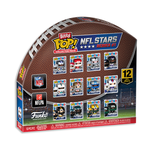 The world of POP! is getting bigger—and smaller—with Bitty POP! collectibles! Expand your NFL fandom with the Bitty POP! Collector NFL Stars 12-Pack assortment! Bitty POP! collectibles are packaged in hard acrylic cases with detachable bottom lids. Detachable bottom lids double as acrylic bases, to which the Bitty POP! figures are adhered. Vinyl figures are approximately 0.9 in (2.3 cm) tall.
