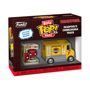 Your favorite Marvel POP! collectibles have been shrunk into Bitty POP! collectibles Expand your collection with Bitty POP! Ride Deadpool and Chimichanga Truck!