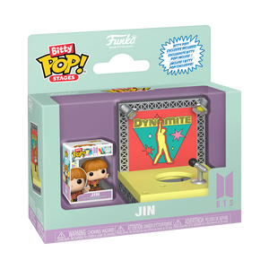 The world of POP! is getting bigger—and smaller—with Bitty POP! collectibles! Expand your BTS collection with Bitty POP! Stage “Dynamite” and Jin! Bitty POP! figure is packaged in a hard acrylic display case with a detachable bottom lid. The detachable bottom lid doubles as an acrylic base, to which the Bitty POP! figure is adhered. Remove Bitty POP! Jin from his display case so he can step onto the Bitty POP! Stage “Dynamite”!