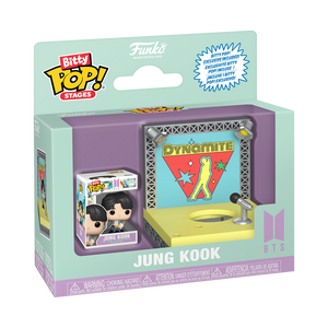 The world of POP! is getting biggerāand smallerāwith Bitty POP! collectibles! Expand your BTS collection with Bitty POP! Stage āDynamiteā and Jung Kook! Bitty POP! figure is packaged in a hard acrylic display case with a detachable bottom lid. The detachable bottom lid doubles as an acrylic base, to which the Bitty POP! figure is adhered. Remove Bitty POP! Jung Kook from his display case so he can step onto the Bitty POP! Stage āDynamiteā!