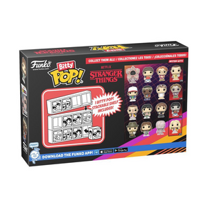 Your favorite Stranger Things Pops! have been shrunk into Bitty Pops! Expand your collection with this assortment of Bitty Pop! figures featuring your most beloved heroes and monsters as miniaturized figures. This 4-pack includes Bitty Pop! Demogorgon, Bitty Pop! Will, Bitty Pop! Barb, and a mystery Bitty Pop! figure.