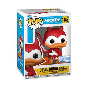 āBoy, oh boy!ā Enjoy a night of trick-or-treating and jack-o-lantern carving alongside this exclusive POP! Devil Donald with Pumpkin! Wearing his classic Halloween costume, complete with a pitchfork and cape, POP! Donald Duck is ready to celebrate with his friends in your Disney collection. Thereās a 1 in 6 chance you may find the black light chase of POP! Devil Donald with Pumpkins.