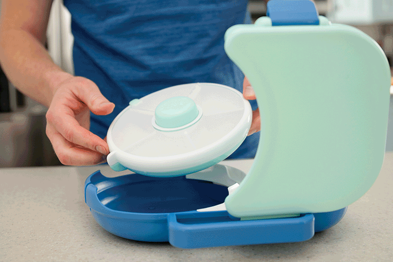 With a bento compartment designed to hold at least a whole sandwich, along with the 5 compartments in the Original Snack Spinner, there’s enough space to bring everything your little one is craving (or may want to try)! -