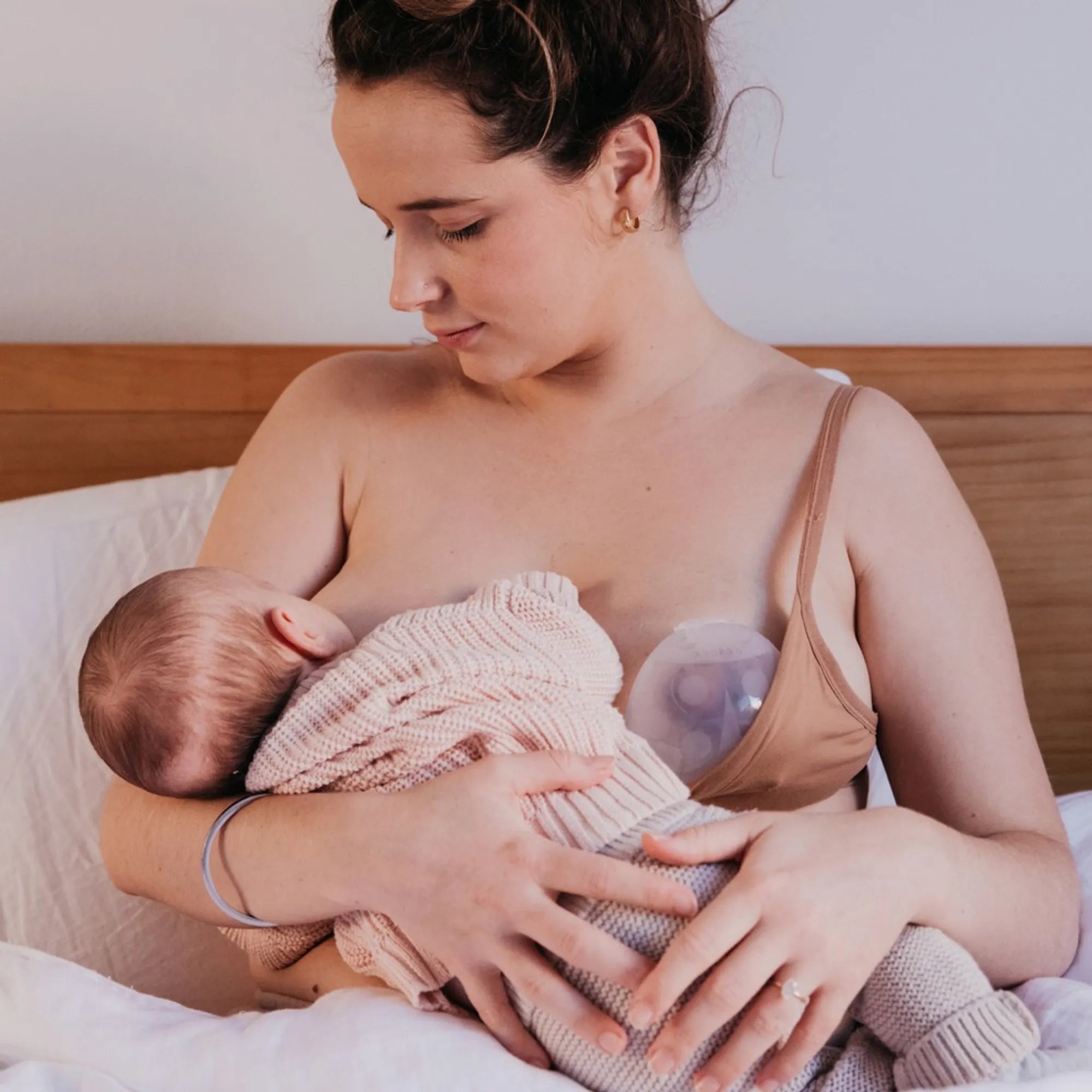 - Press to your breast and release to create gentle suction and begin collecting let-down.