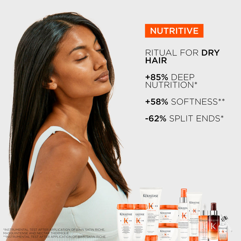 Kerastase Nutritive is packed with skincare inspired ingredients including plant-based proteins, niacinamide and vitamins to help restore dry and depleted hair.