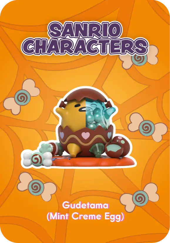 Your favorite Sanrio friends are dressed up for the sweetest fright night ever—each 4” vinyl figure is half-transparent and filled with shaker balls, styled after delicious Halloween treats like candy corn, candied apples, and mint crème eggs.