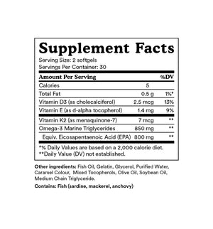 | Omega-3 Marine Triglycerides (equivalent to 800 mg EPA) | 850 mg | High-purity EPA (92% concentration) to support heart and brain health. |
