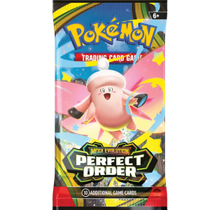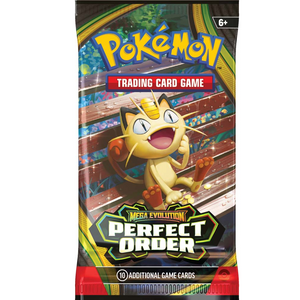 Secret powers awaken in the Mega Evolution – Perfect Order expansion! As the rhythm of the city connects Pokémon and Trainers alike, Mega Zygarde ex rises as the ultimate protector of balance and order. Alongside powerful Pokémon like Mega Clefable ex, Mega Starmie ex, and Meowth ex, this set introduces exciting new cards, strategies, and stunning artwork to elevate your collection.