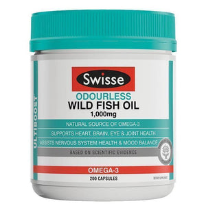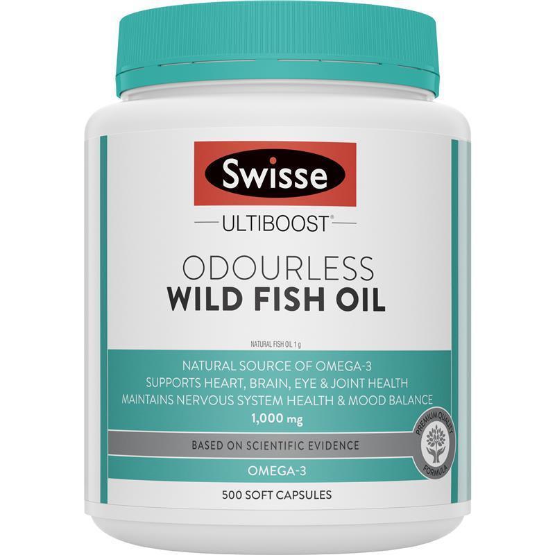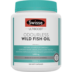 Swisse Ultiboost Odourless Wild Fish Oil is a premium quality, sustainably sourced formula containing the omega-3 fatty acids EPA and DHA to support heart, brain, eye and joint health, as well as maintain a healthy nervous system and mood balance.