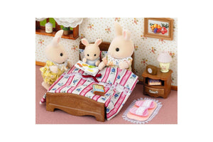 This is a large bed on which mother and baby or two children can sleep. A lamp stand, clock, canister and other items can be placed on the side table. The bed allows two to sleep together very comfortably.