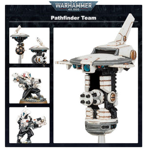 This multi-part plastic kit contains 137 components, allowing you to build 10 T’au Pathfinders, a Pulse Accelerator Drone, a Grav-inhibitor Drone, and a Recon Drone.